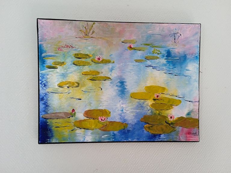 Si vous aimez ce thème des nénuphars, vous trouverez un autre de mes tableaux sur ce motif. J’ai également réalisé une carte postale sur ce thème. A vous de les découvrir!